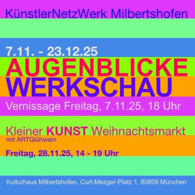 Anlässlich des 20-jährigen Bestehens des Kulturhauses zeigt das KünstlerNetzWerk Milbertshofen eine Werkschau von Exponaten mit Sprengkraft aus den Bereichen Malerei, Zeichnung, Fotografie, Mundart-Poesie, Plastik, Installation und jederzeit Fesselndes.