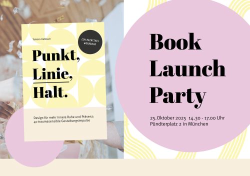 Wir feiern die Veröffentlichung des traumasensiblen Design Workbooks „Punkt, Linie, Halt.“ – mit einer kreativen Book Launch Party, die mehr ist als nur eine Feier. Dich erwartet ein offener Raum zum Ausprobieren, Innehalten und Begegnen.