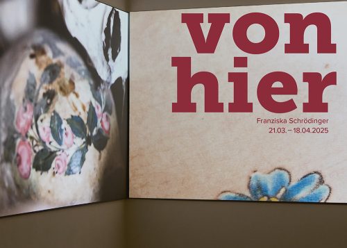 Die Münchener Fotografin und Videokünstlerin Franziska Schrödinger stellt in ihrer mehrkanäligen Videoinstallation „von hier“ ein Motiv in den Mittelpunkt, das zugleich kunsthistorisch aufgeladen und alltäglich, fast kitschig ist: die Blume. Auf der einen Seite: kunstvoll bemalte Totenschädel aus Dingolfing und Hallstatt – mit floralen Mustern verziert, doch starr, zeitlos, entrückt. Auf der anderen Seite: florale Tätowierungen auf lebendiger Haut – warm, glänzend, in subtiler Bewegung. In ihrer Gegenüberstellung entfaltet sich ein Spannungsfeld zwischen Leben und Tod, Erinnerung und Identität.