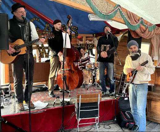 dunghill – celebrates a semi acoustic performance! Mit Gitarre, Cajon/Percussion, Kontrabass, Mandoline, Knopfakkordeon, Banjo, Mundorgel und zwei Stimmen erzählen die vier Musiker aus dem Münchner Westen in Englisch, Rumänisch, Spanisch und Bayrisch vom Alltäglichen, Träumen und Abenteuern – mal traurig, mal kritisch, poetisch aber auch lustig.