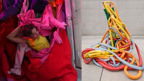 Für die Tänzerin und Choreografin Katrin Schafitel hat Robert Kis Ojektkostüme geschaffen.