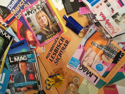 Für die Gestaltung der Zines sind diverse Materialien vorhanden. Falls Ihr mit bestimmten Materialien arbeiten wollt, bringt sie gerne mit.