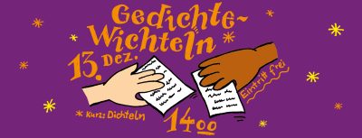 Kulturzentrum Giesinger Bahnhof Giesinger Bahnhofplatz 1, München, Bayern„Gedichte sind die schönsten Geschenke – sowohl für die, die eines verschenken, als auch für die, die mit einem beschenkt werden.“, finden die Poesieboten und laden am Samstag, den 13. Dezember 2025 um 14 Uhr in den Kurt-Mahler-Saal im Giesinger Bahnhof ein. Und so einfach geht das Gedichte-Wichteln (kurz: Dichteln): Wer mitmachen will, bringt ein […]